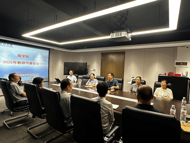 2025年9月10日上午,商学院在文科1号楼701会议室举行教师节座谈会。学院党委书记于增环、院长张纪出席会议,副院长熊豪主持会议,20余名教师代表参会。