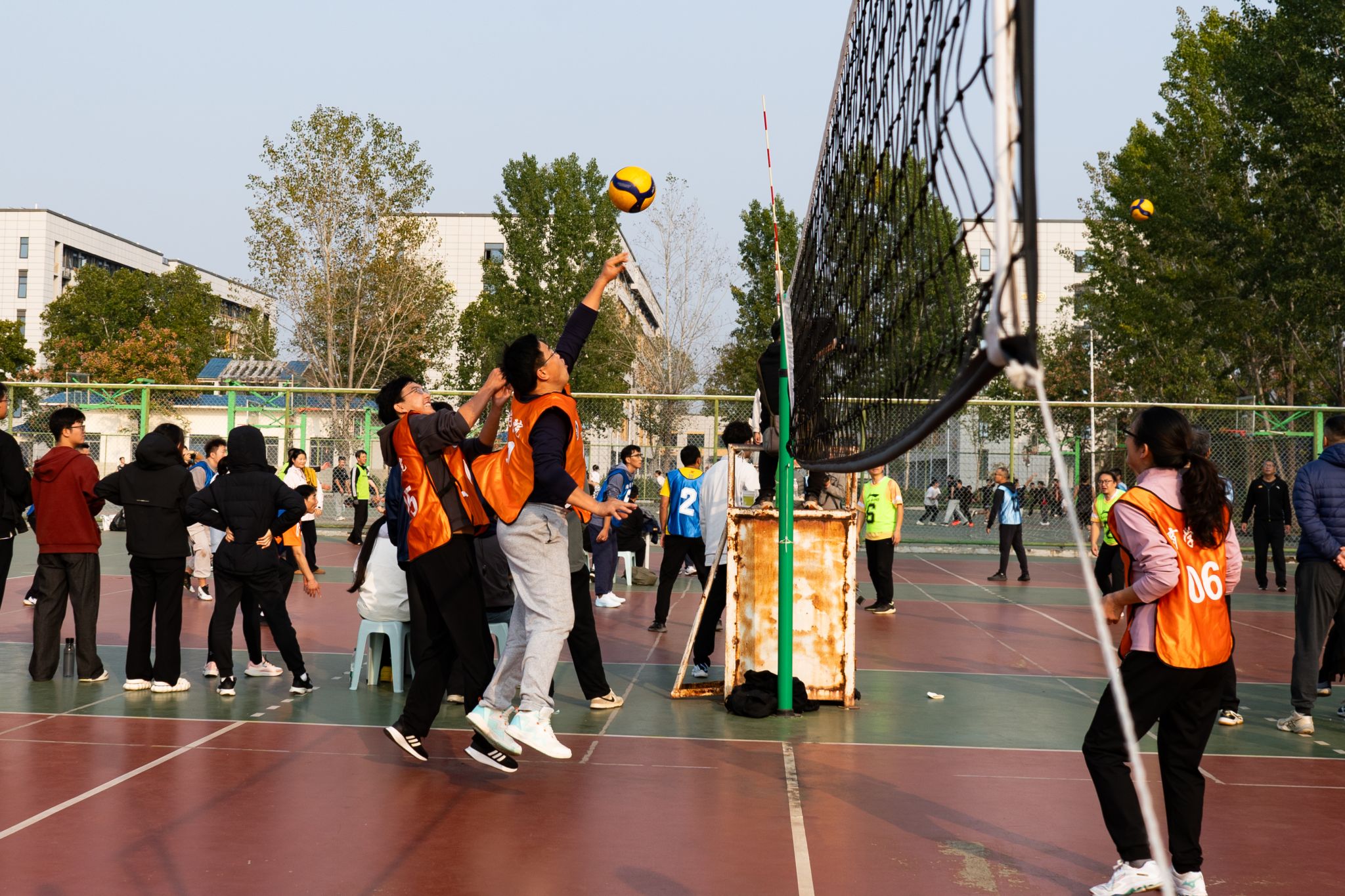 商学院高度重视此次赛事,赛前学院排球队认真开展了系统训练。商学院党委书记于增环担任领队,统筹训练安排;韩红教授选拔队员并带领队员进行具有针对性的技战术训练。比赛期间,球队生动展现出良好的竞技状态与默契配合,老队员凭借丰富的经验,能够在关键时刻稳住局势,年轻队员则敢打敢拼。