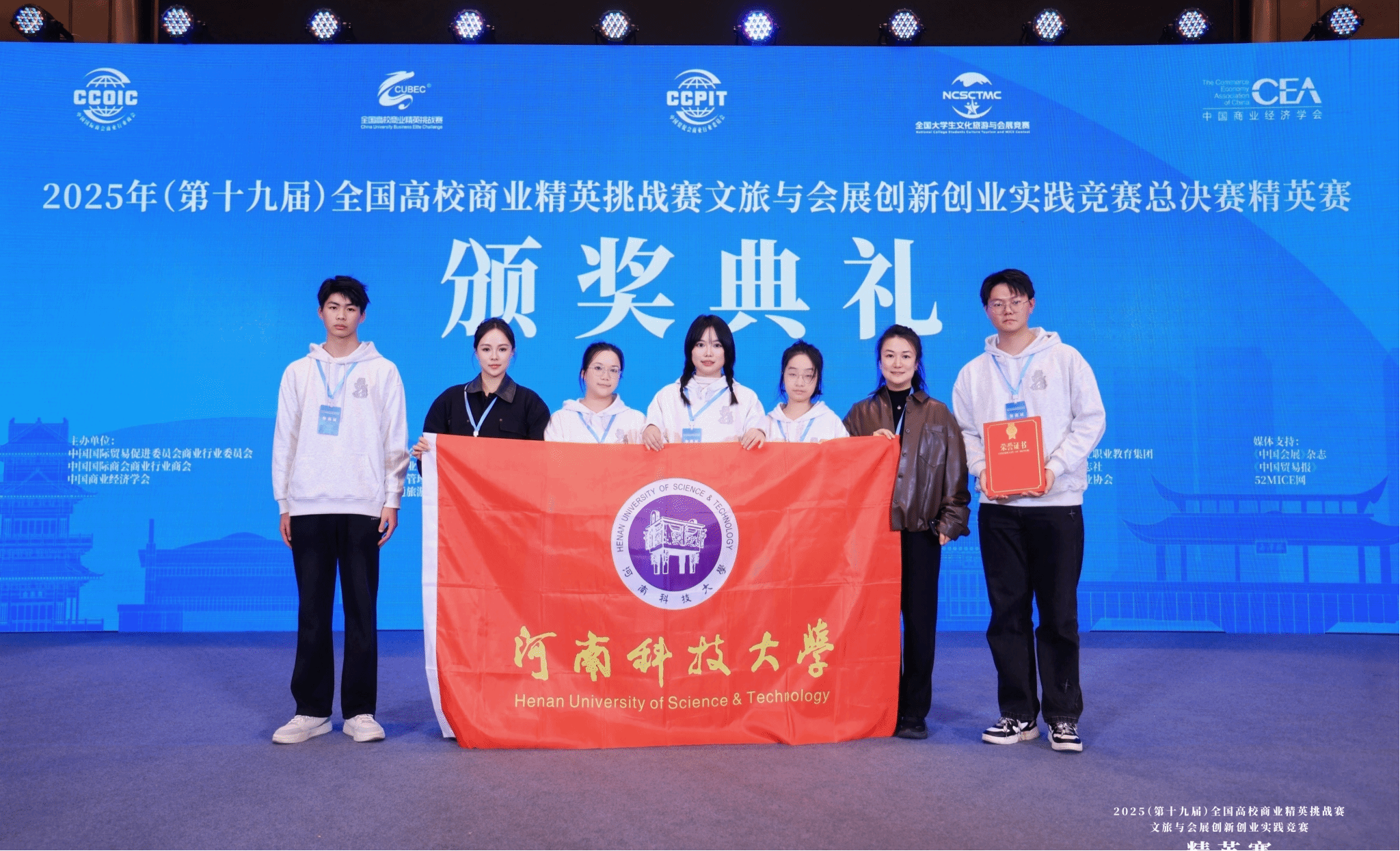 2025年11月21日至11月23日,第十九届全国高校商业精英挑战赛文旅与会展创新创业实践总决赛精英赛在浙江永康举办。商学院赵楠、王值和汤怡莹老师指导,高云鹏、王言西、刘云昊、李惠娟和石元凤等同学参加的项目《“复位合璧,华光再现”——龙门石窟“让国宝回家”研学旅行策划案》,经过激烈角逐,最终以第二名的总成绩获得旅游新业态策划赛道全国亚军!