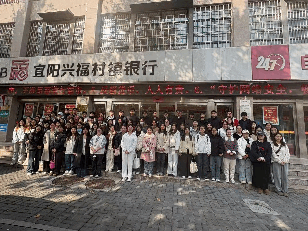 2025年11月13日,商学院2022级金融学专业学生在吴昱、王泳茹老师的带领下赴宜阳兴福村镇银行进行参观学习。