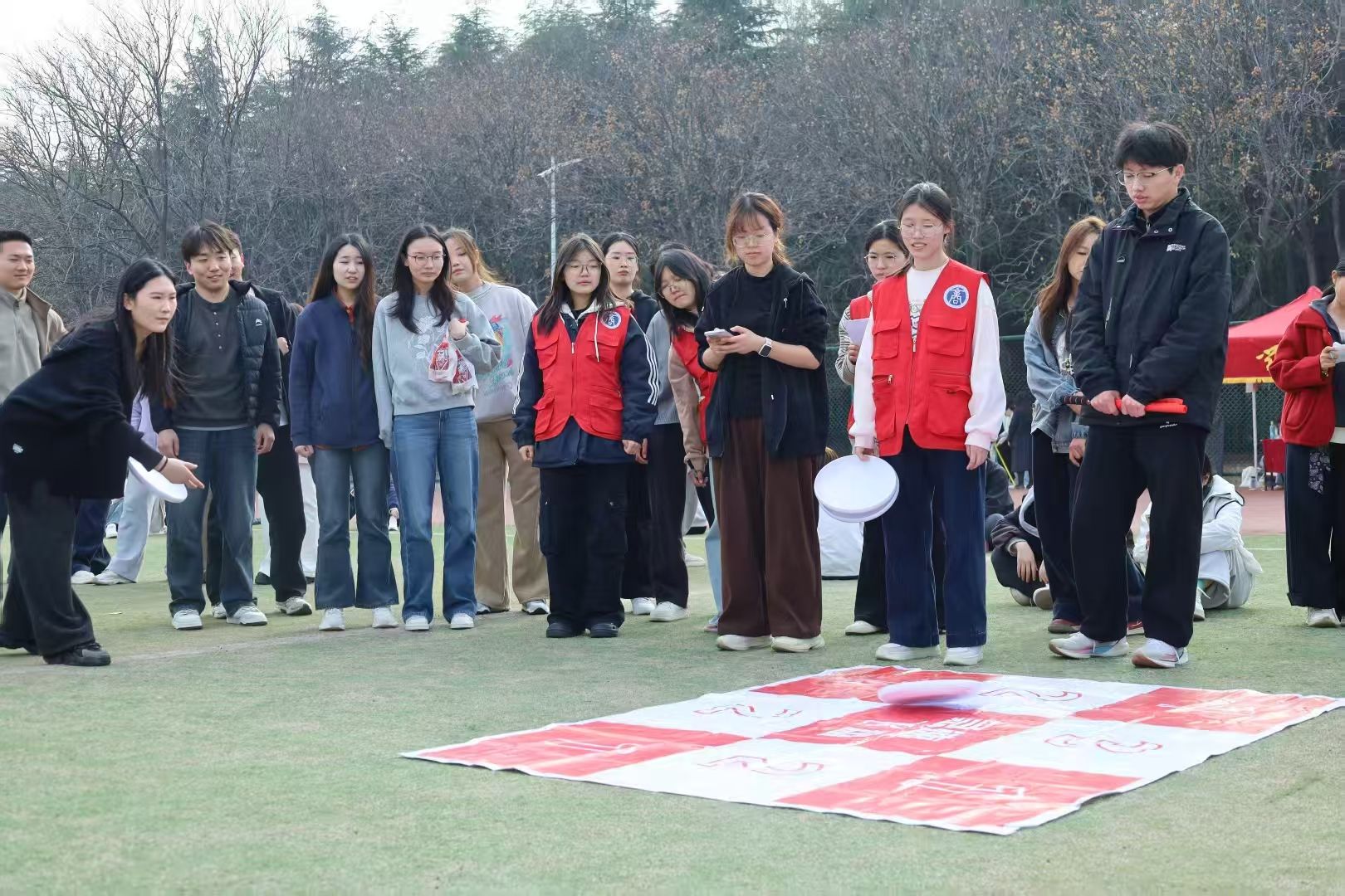 运动会期间,志愿者坚守岗位、细致服务,同学们文明观赛、热情互动,共同营造出热烈有序、温暖向上的良好氛围。