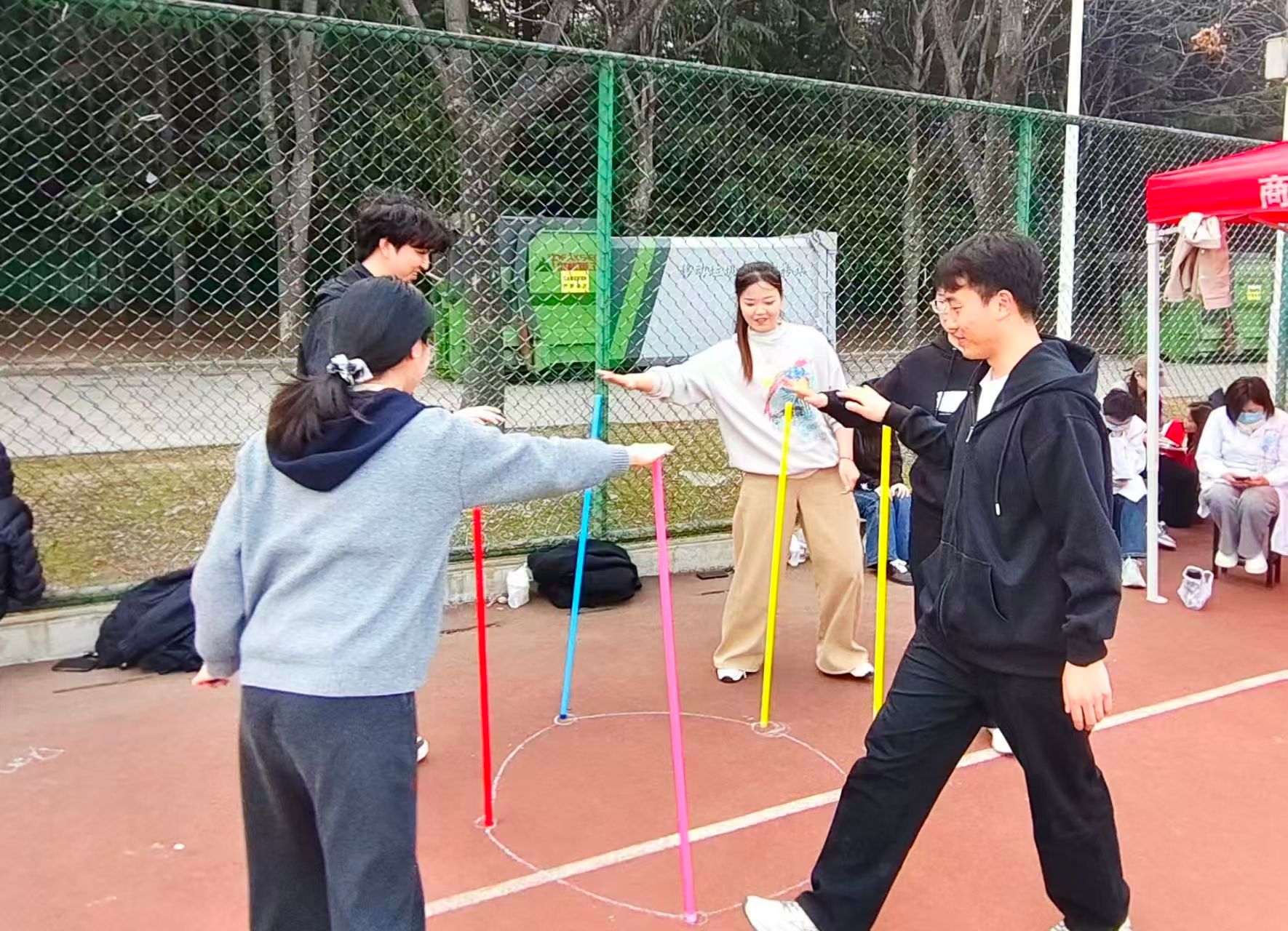 “不倒森林”“九宫飞星”等心理趣味项目中,同学们默契配合、协作共进,在轻松有趣的比拼中释放压力,尽显青春活力与团队凝聚力。